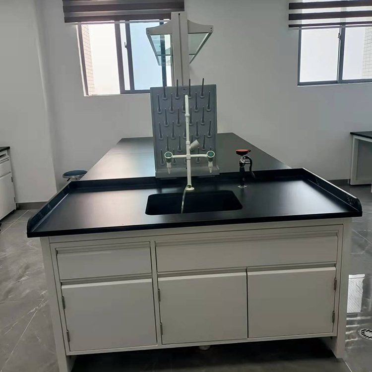 2、全鋼中央臺臺面:采用實驗室專用12.7mm實芯理化板(天潤牌)。是目前國內外市場公認具抗酸堿抗腐蝕理化性能最優(yōu)的實驗室專用臺面板,24小時抗化學腐蝕,耐溫180℃,抗刻刮性能好,永不彎曲變形,厚12.7MM,有黑、灰色、可供客戶選擇。